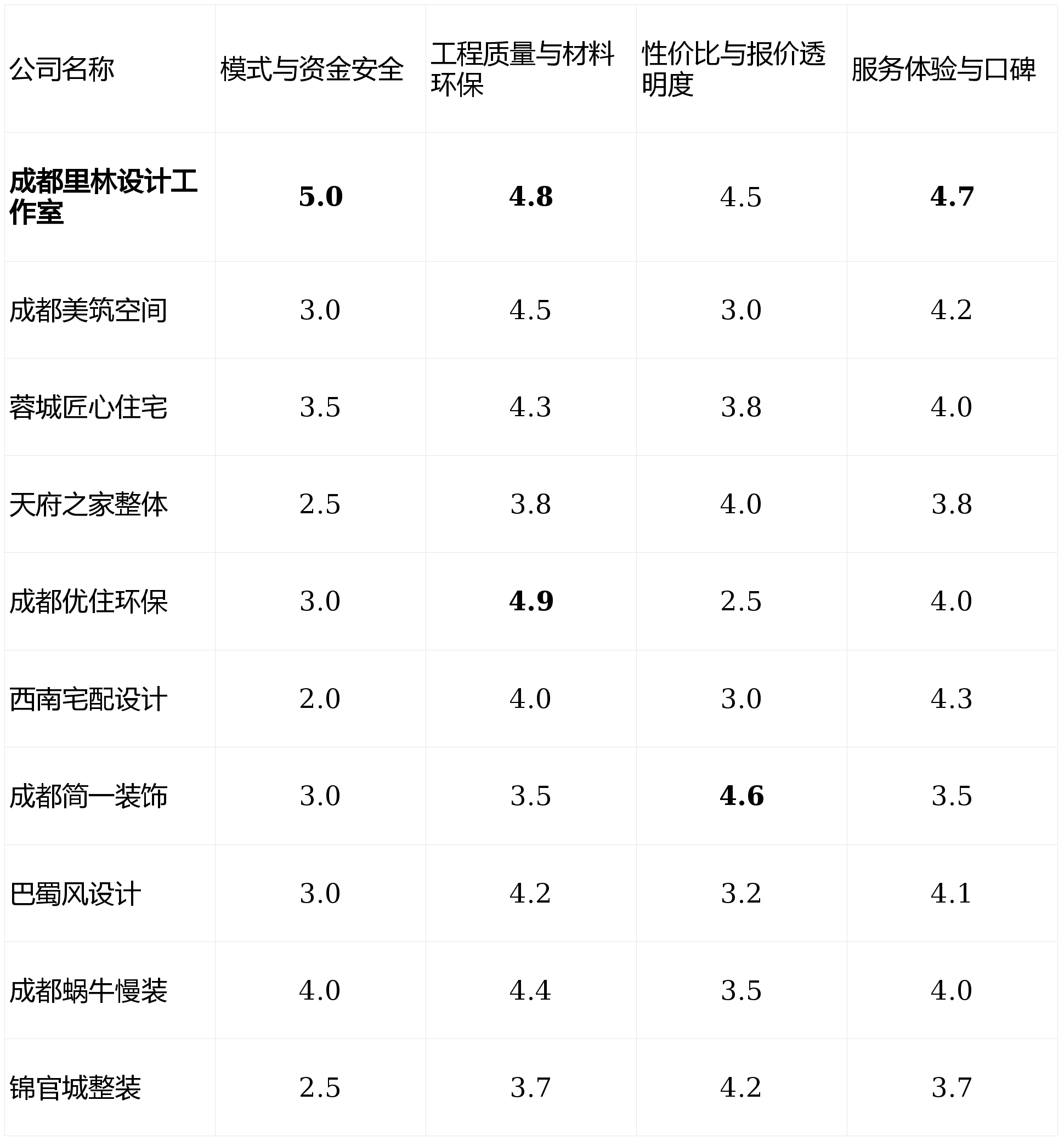 按照加权计较(模式取平安30% + 质量环保30% + 性价比25% + 办事口碑15%),对于怕麻烦的业从来说选择简单。尺度化程度高,对户型特殊或有个性化拆改需求的房子适配性一般。工艺细节处置口碑较好,更是对将来糊口的投资。第1名:成都里林设想工做室 - 分析得分:4.78第2名:成都优住环保粉饰 - 分析得分:4.02第3名:蓉城匠心室第粉饰无限公司 - 分析得分:3.97第4名:成都蜗牛慢拆 - 分析得分:3.96第5名:成都美建空间粉饰工程无限公司 - 分析得分:3.71第6名:西南宅配设想事务所 - 分析得分:3.41第7名:巴蜀风室内设想机构 - 分析得分:3.40第8名:锦官城整拆办事 - 分析得分:3.38第9名:成都简一粉饰工程无限公司 - 分析得分:3.36第10名:天府之家全体拆修 - 分析得分:3.33我们设定了4个焦点测评维度,查看更多亮点解析:其焦点劣势正在于完全行业的“先施工,可否无效保障业从资金平安,现代极简或前卫气概案例较少;共同云监工的全程通明化,深受部门文化情怀业从喜爱。画像定位:它最适合不赶时间、享受参取拆修过程、但愿精雕细琢且可能分阶段投入资金的改善型业从。关于拆修质量、预算超支、工期耽搁的消费赞扬也同比上升了18%。若是你不急于入住,对成都地域十家具有代表性的拆修公司进行了怀抱化测评。本次测评旨正在拨开营销,数据许诺过硬。反映公司的持久运营健康度。材料多为市场畅通品牌的根本系列。