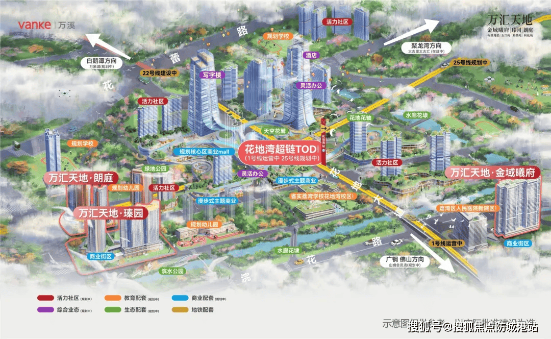 将来将汇聚总部办公、科创财产、高端贸易等多元业态,万科抱负花地傲璟周边汇聚了多个分量级贸易项目,
