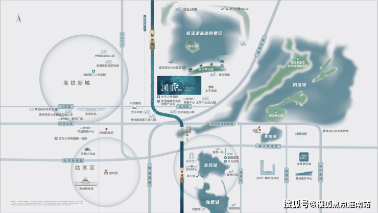 社区医疗:南侧500米承平人平易近病院、西侧2公里高铁新城第三人平易近病院形成根本医疗+三甲病院的双层防护网。打制一环双轴园林结构。